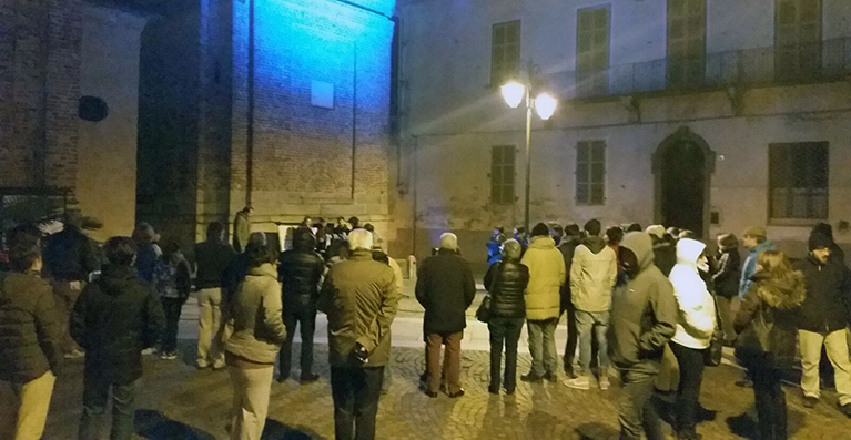 Valperga, studenti e popolazione contro la pena di morte e, il campanile, s’illumina di blu