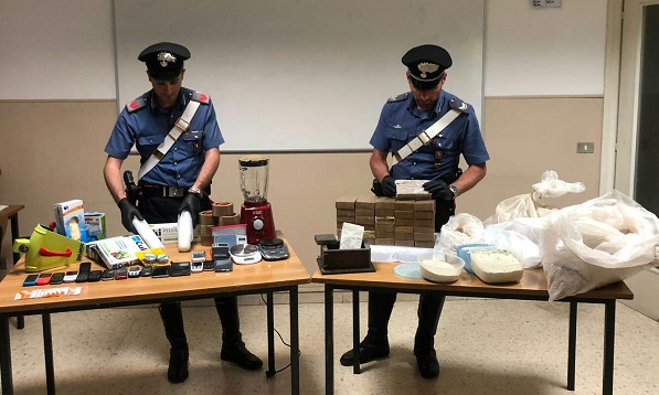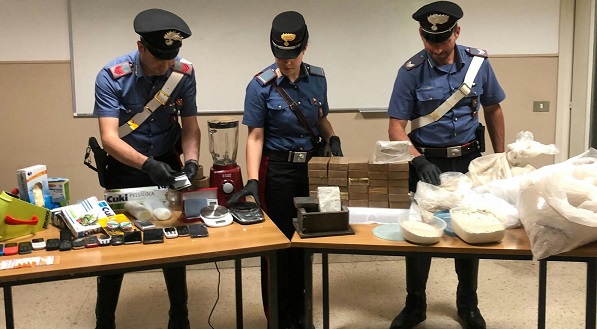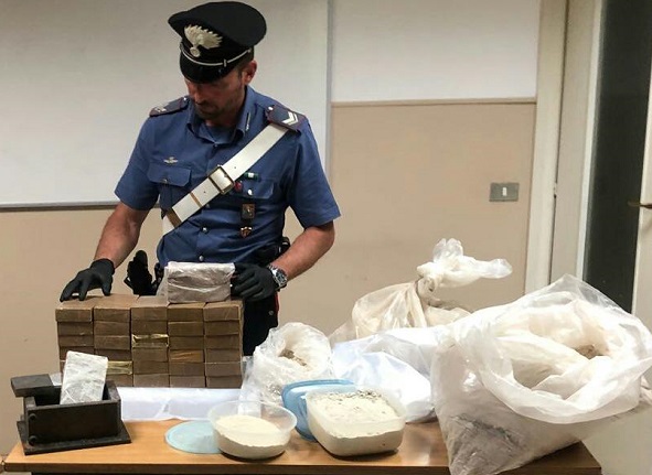 I carabinieri di Ventimiglia, con la collaborazione del Nucleo Investigativo di Imperia e dei militari della Compagnia di Ivrea, hanno concluso una brillante operazione antidroga che ha portato, nella fase conclusiva, all’arresto in flagranza di cinque persone ed al fermo di indiziato di delitto di una sesta, con il sequestro ben di diciotto chilogrammi e mezzo di eroina, 645 grammi di cocaina e 50 grammi di hashish, nonché di quasi venticinquemila Euro in contanti, provento dello spaccio.